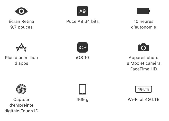 - écran Retina 9,7 pouces 2048×1536 à 264 ppi