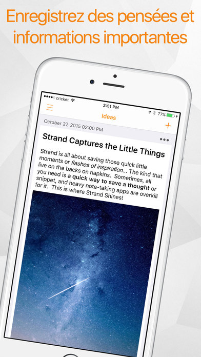 Une appli de prise de notes qui se veut ultra minimaliste mais efficace. Nécessite iOS 9.0 ou une version ultérieure. Compatible avec l’iPhone, l’iPad et l’iPod touch. Sans achats in-app.