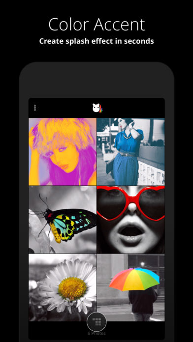 Color Accent vous permet d’ajouter des effets d’accentuation (également appelés effet splash ou highlight) à vos photos en quelques secondes. Il suffit de toucher pour sélectionner les couleurs à garder. Nécessite iOS 9.0 ou une version ultérieure. Sans achats in-app.
