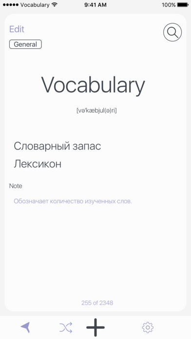 Créez votre propre dictionnaire avec Vocabulary. Notez tous les nouveaux mots que vous apprenez dans une nouvelle langue directement sur votre iPhone, iPad ou iPod touch afin d’enrichir votre vocabulaire. Nécessite iOS 8.2 ou une version ultérieure. Compatible avec l’iPhone, l’iPad et l’iPod touch. Inclut des achats in-app.