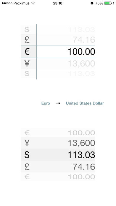 Convertissez des devises en toute facilité, avec mise à jour en temps réel des taux de conversion. Nécessite iOS 7.1 ou une version ultérieure. Compatible avec l’iPhone, l’iPad et l’iPod touch. Sans achats in-app.