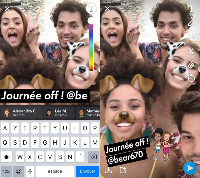 En ce qui concerne la mention d’un ami, il suffit simplement de mettre « @ » devant le nom d’utilisateur de l’ami et il recevra une notification lui laissant savoir qu’il est mentionné dans une Story.