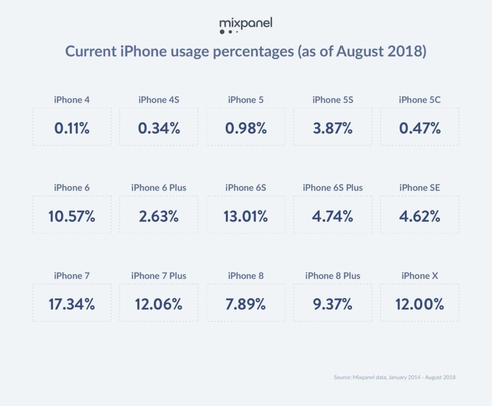 Quelques heures avant la présentation des iPhone de 2018, la société d’analyse Mixpanel nous lègue les résultats d’une recherche qui peuvent s’avérer intéressantes ; l’iPhone 6s et l’iPhone 7 seraient les iPhone les plus utilisés en ce moment.