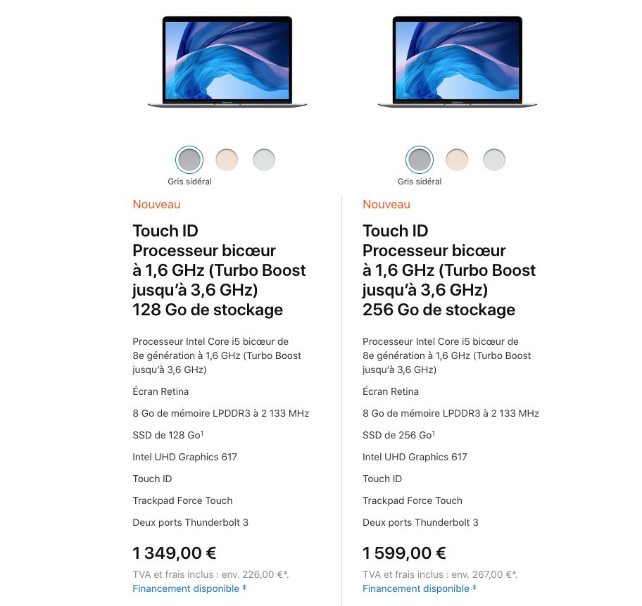 La machine peut être achetée sur le site d’Apple. Le prix de démarrage du nouveau MacBook Air est de 1 349 euros. Les précommandes sont lancées aujourd’hui et les premières livraisons se feront vendredi 7 octobre prochain. Oh, le coloris Or et le coloris Gris Sidéral sont proposés, en plus du coloris Argent.