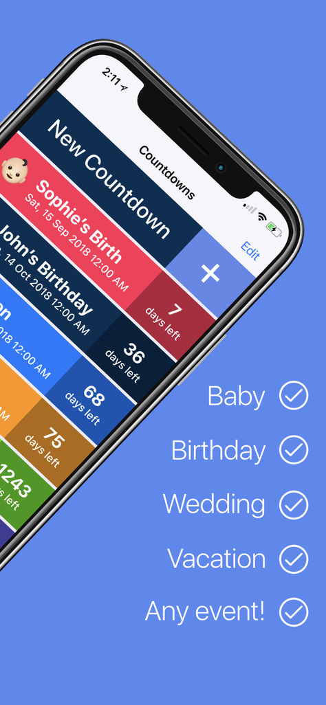 Visualisez d’un coup d’œil combien de temps il reste avant des évènements importants que vous avez configurés.