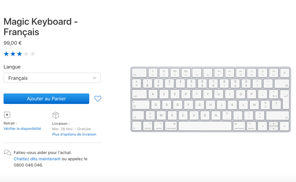 Apple a opéré un tout petit changement autour du Magic Keyboard, son clavier sans fil (et sans pavé numérique). Ce changement concerne le prix de l’appareil ; il est passé de 119 euros à 99 euros, une réduction de 20 euros.