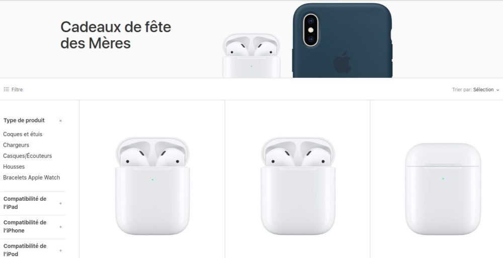 Avec ces idées cadeaux, Apple ne suggère pas d’iPhone, d’iPad ni d’Apple Watch encore moins de Mac. On retrouve plutôt les accessoires. Pour commencer, on retrouve les AirPods de deuxième génération avec les 3 choix d’achat proposés : les AirPods avec le boîtier de charge classique pour la somme de 179 euros, les AirPods avec le boîtier de charge sans fil au prix de 229 euros et le boîtier de charge sans fil séparément à 89 euros.