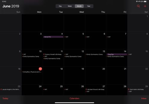 - Une modification de la couleur et de l’interface de l’application Calendrier quand on active le mode sombre
