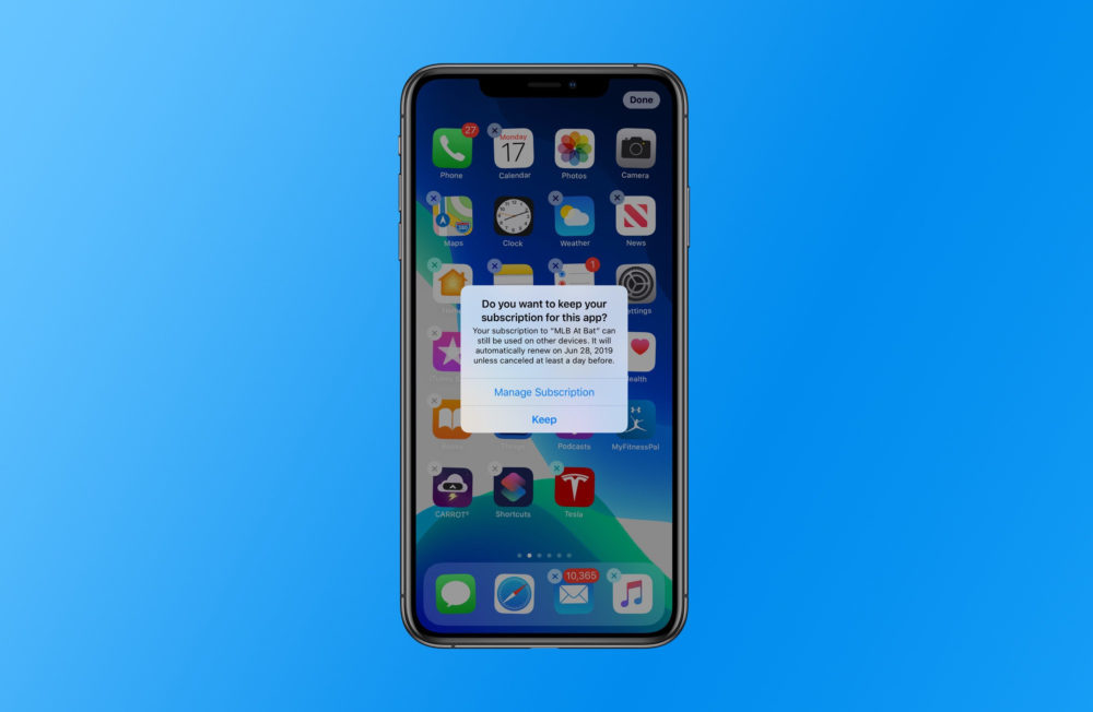 C’est Federico Viticci qui a fait cette découverte sur iOS 13 bêta 2 et a partagé l’information sur son compte Twitter. Lorsque vous tentez de supprimer une application ayant un abonnement actif, une fenêtre va apparaître avec écrit dessus : « Voulez-vous conserver votre abonnement pour cette application ? ». Ainsi, l’utilisateur est invité à gérer l’abonnement (et de supprimer l’application par la suite, ndlr) ou de garder l’application en question.