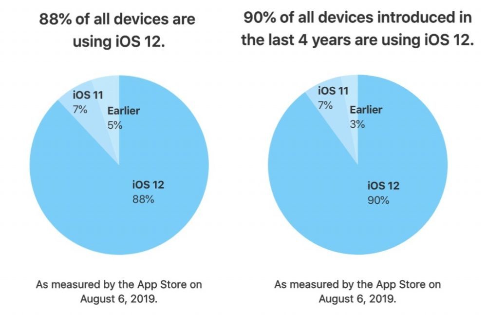 La version d’iOS 12 continue son petit bonhomme de chemin. La version est maintenant installée sur 88% des iPhone, iPad et iPod touch en circulation.