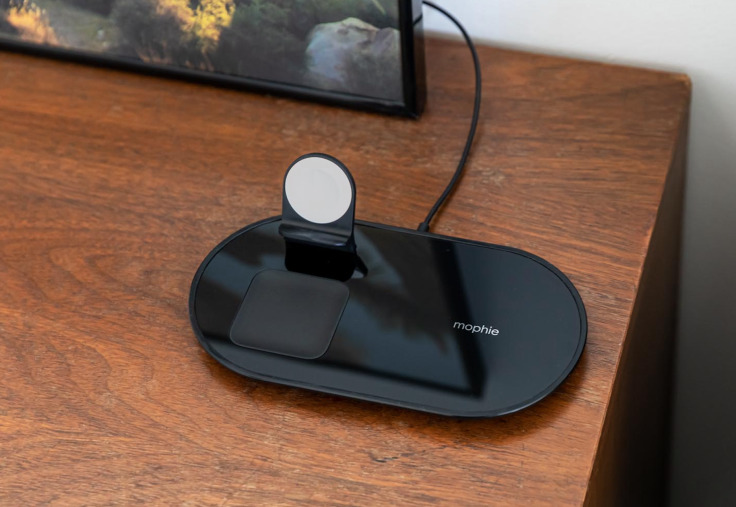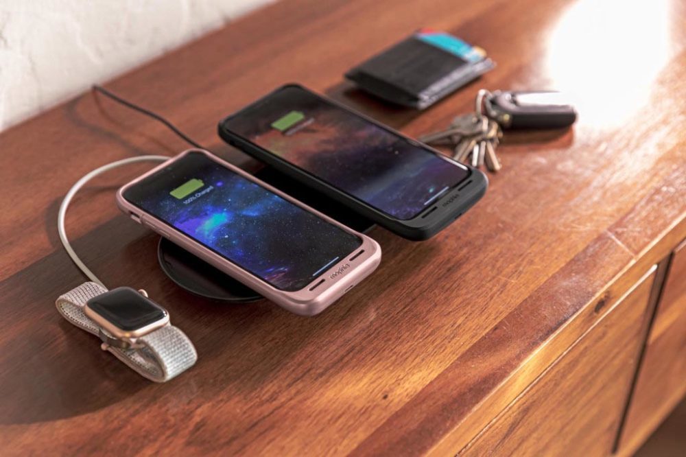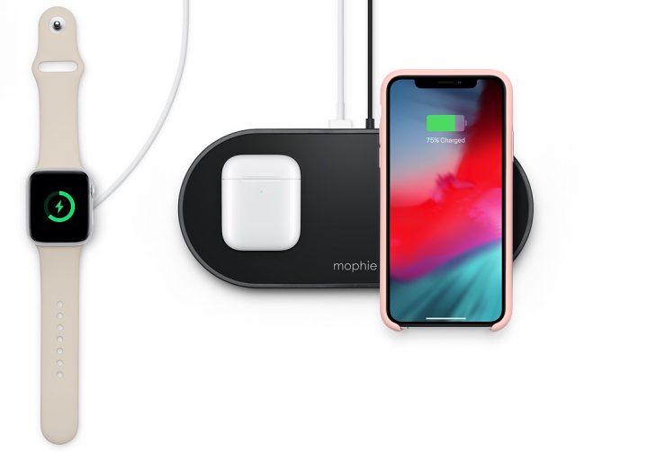 Morphie présente deux modèles. Le premier modèle permet de recharger sans fil en même temps deux appareils, avec une puissance de 7,5 W : deux iPhone, un iPhone et une Apple Watch, un iPhone et des AirPods, deux Apple Watch… et marche avec tous les iPhone et les AirPods qui sont compatibles. En plus, il est possible de recharger un troisième appareil dessus, toutefois, il faut brancher ce dernier à un câble USB qui à son tour sera connecté au socle de recharge. Son prix est de 109,95 euros.
