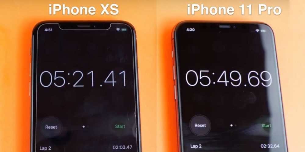 Il commence par ouvrir une série d’applications successivement pour la première fois dans le but de tester… la puissance « brute » de l’iPhone. Vous vous en doutez, l’iPhone X est loin derrière. L’iPhone Xs se fait devancer par l’iPhone 11 Pro de seulement une seconde.