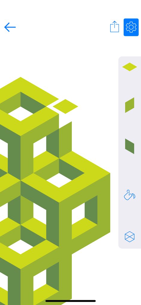 Isometric permet aux utilisateurs de créer de superbes motifs géométriques en tapotant, en faisant pivoter, en faisant glisser et en manipulant des formes colorées de base.