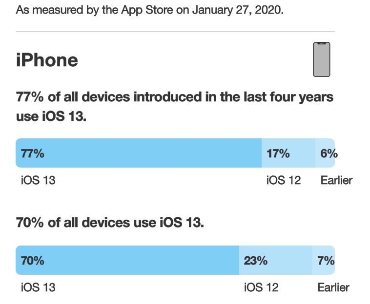Article connexe : iOS 13 est installé sur 50% des iPhone et iPod touch, iPadOS sur 33% des iPad