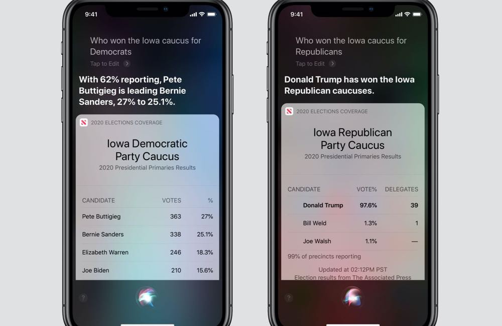 Depuis quelques jours, Siri répond aux questions concernant les élections. Le tout illustré avec des liens vers Apple News.