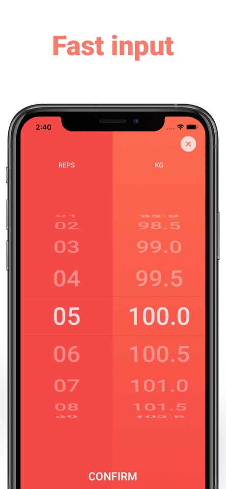 Strongify est l’application de suivi d’entraînement la plus simple. Entrez le nombre de répétitions et le poids que vous avez levé en quelques touches.