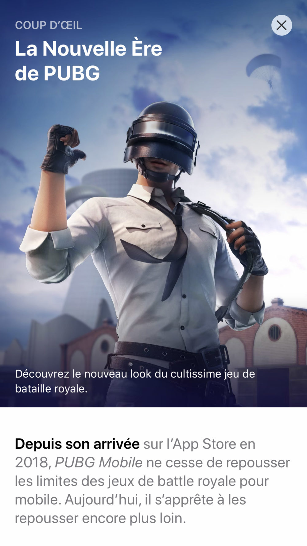 Si vous jetez un coup d’œil sur l’App Store, vous serez en mesure de voir « La Nouvelle Ère de PUBG » qui est mise en lumière par Apple sur sa boutique d’application. Dans un article dédié, Apple propose de « découvrir le nouveau look du cultissime jeu de bataille royale ». Pour ce faire, le Californien raconte que « depuis son arrivée sur l’App Store en 2018, PUBG Mobile ne cesse de repousser les limites des jeux de battle royale pour mobile. Aujourd’hui, il s’apprête à les repousser encore plus loin ». Une publication qui a fait son apparition quelques jours après que le jeu Fortnite d’Epic Games ait été enlevé de l’App Store. Un argument pour défendre la publication de cet article ?