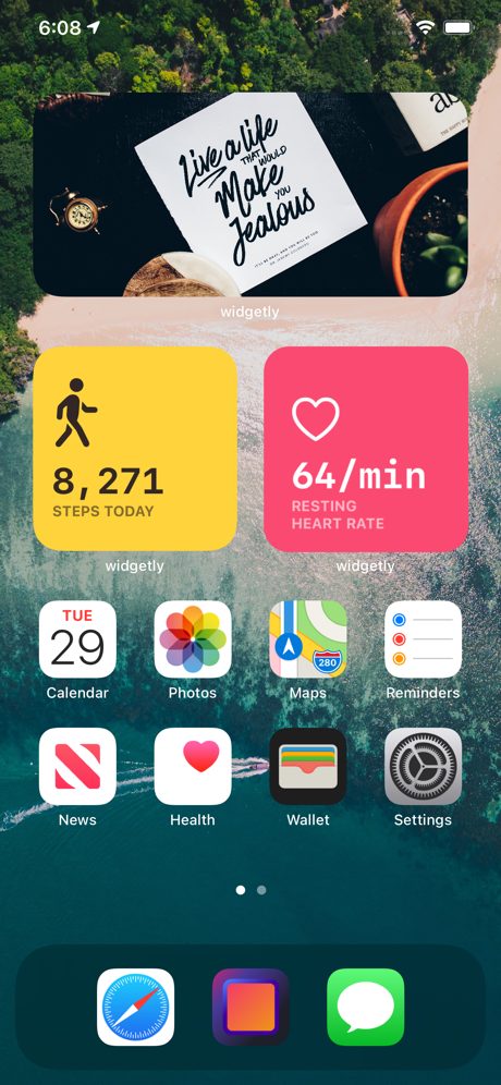 Widgetly est livré avec des options de personnalisation. Vous pouvez créer des widgets photo, des widgets d’arrière-plan solide, l’affichage de l’heure et des widgets de comptage des pas.