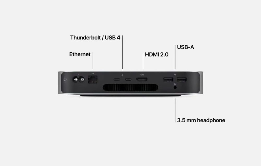 Ainsi, à en croire Apple, nous pouvons nous attendre à des performances de CPU jusqu’à 3 fois plus rapides et des performances graphismes jusqu’à 6 fois rapides que le précédent Mac mini. Toujours selon les dires d’Apple, le Mac mini se veut 5 fois plus rapide que les ordinateurs de bureau les plus vendus.
