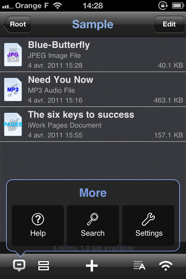 Toujours dans cette fonctionnalité « edit », vous pouvez zipper/dezipper vos fichiers avec le bouton central dans la barre en bas. La même icône vous permet de bouger vos fichiers d’un dossier à l’autre, de les copier ou encore de les supprimer. Dernier gros plus: vous pouvez accéder aux fichiers de l’application directement sur votre ordinateur grâce à votre réseau wifi. Pour savoir comment procéder, il suffit de sélectionner l’aide dans la première icône en bas de la page d’accueil. Tout est expliqué en détail et est très simple à mettre en place.