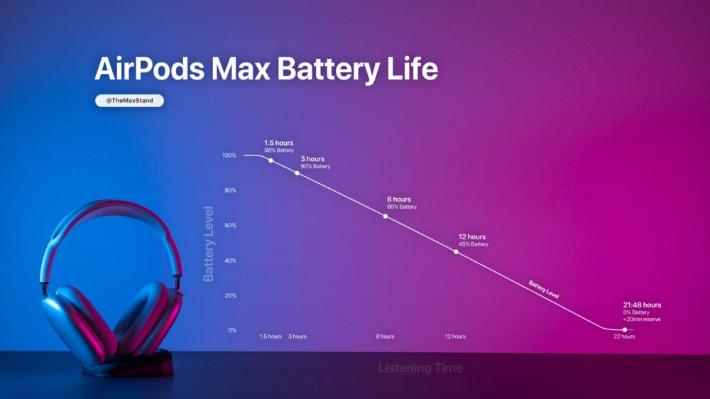 Lors de sa présentation, Apple a annoncé une autonomie jusqu’à 20 heures pour les AirPods Max. Selon des tests qui ont été réalisés, l’autonomie qui a été annoncée par le constructeur est la bonne.
