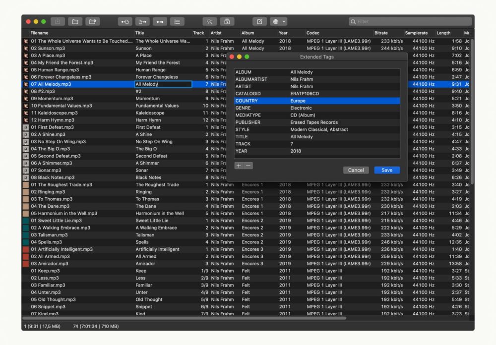 Mp3tag supporte plusieurs formats audio et embarque plusieurs outils avancés qui permettent aux utilisateurs de bien organiser les métadonnées des musiques. Parmi les formats audio supportés par l’application en plus des fichiers en format MP3, nous retrouvons les formats suivants : FLAC, OGG, OPUS, AIF, DSF, MPC, WAV, MP4 et M4V. Mp3tag offre la possibilité de faire glisser un ou plusieurs fichiers audio dans l’application afin modifier les métadonnées de chacun en un tour de main.