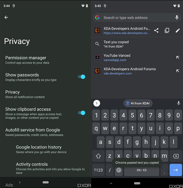 Quand nous copions un texte dans une application et que nous le collons dans une autre application, une notification apparaît en haut de l’écran sous iOS 14 qui nous fait savoir que telle application a accès à notre presse-papier et qu’elle a collé un texte, une image… venant d’une autre application. De son côté, Android 12 va ajouter cette fonctionnalité, selon XDA-Developers.