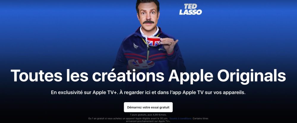 C’est sur le site du service de streaming vidéo qu’Apple a fait l’annonce : « 7 jours gratuits puis 4,99€/mois ou 1 an gratuit si vous achetez un appareil éligible avant le 30 juin ». Par conséquent, si un utilisateur achète un iPhone, iPad, Mac ou Apple TV à partir du 1er juillet, il pourra jouir d’un essai gratuit de 3 mois, et non un essai d’un an, à Apple TV+.