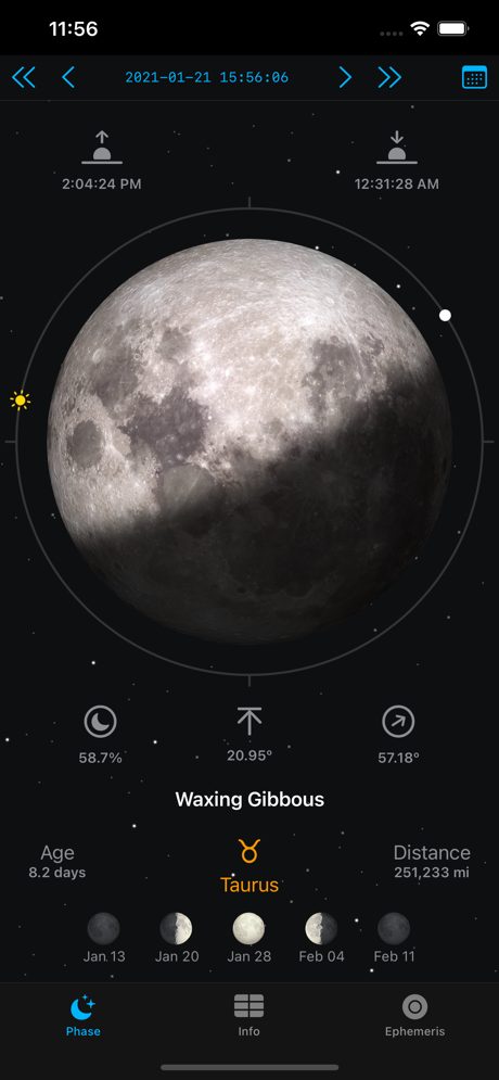 LunarSight est une application spécialisée pour les passionnés de la Lune. Il vous donne accès aux données de phase, d’orbite et de position de la Lune pour n’importe quelle date et emplacement sur la terre.