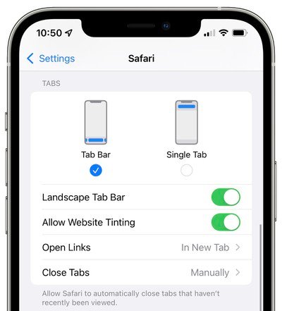 « La barre d’onglets inférieure a été repensée pour apparaître sous le contenu de la page. Une option pour afficher la barre d’adresse en haut est également disponible », a annoncé Apple.