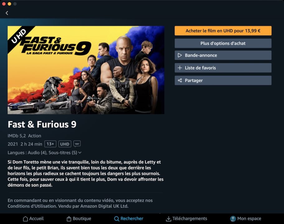 L’application Amazon Prime Video est disponible gratuitement au téléchargement sur Mac et requiert la version de macOS 11.4 ou une version plus récente.
