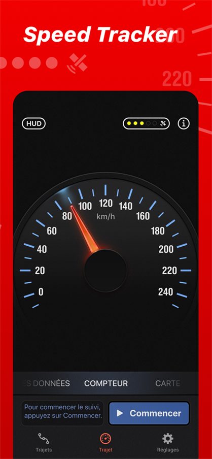 L’application SPEED TRACKER est un compteur de vitesse GPS et un ordinateur de bord qui vous permet de recevoir toutes les statistiques nécessaires: vitesse, temps du trajet, distance, direction, altitude etc.