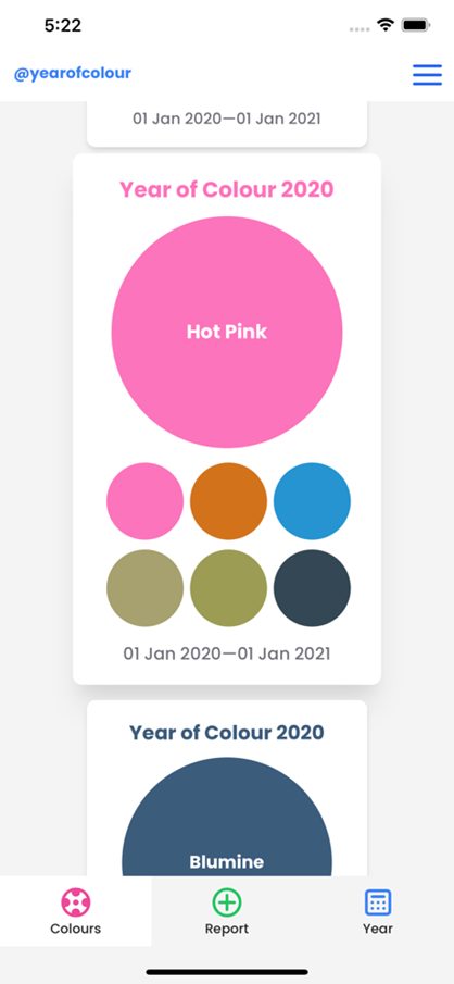 Year of Color est un bilan annuel de vos publications Instagram tout au long de l’année, avec une différence ! Connectez-vous avec votre compte Instagram et l’application analyse tous vos messages de l’année. Pour chaque image, il trouve les couleurs les plus importantes qu’elle contient, puis combine toutes les couleurs en une belle représentation partageable de votre année.