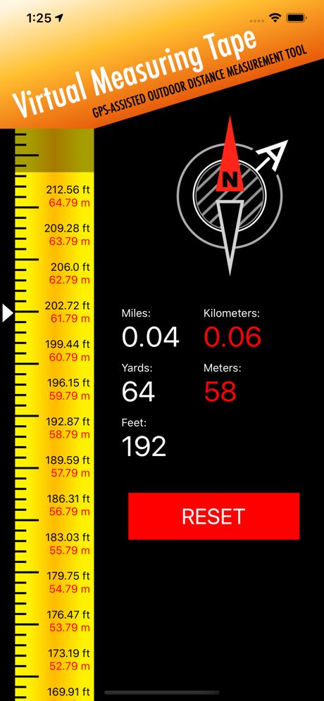 Cette application mesure la distance (aérienne) la plus courte entre un point A et un point B à l’aide du GPS avec une précision maximale disponible en yards, mètres, kilomètres et miles. Vous réinitialisez simplement la règle au point A, puis vous regardez les compteurs de distance augmenter à mesure que vous vous déplacez vers le point B (comme si vous utilisiez un vrai ruban à mesurer ou une règle).