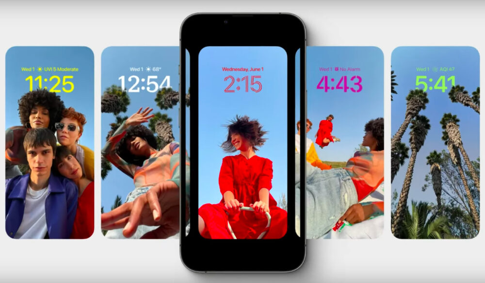 Il est possible de créer un fond d’écran avec plusieurs images qui défilent tout au long de la journée. Les utilisateurs peuvent également créer des écrans de verrouillage en utilisant leurs combinaisons d’emoji ou de couleurs préférées. La fonctionnalité Concentration marche de pair avec le nouvel écran de verrouillage : le choix de votre photo et de vos widgets peut être lié à un mode de concentration en particulier.
