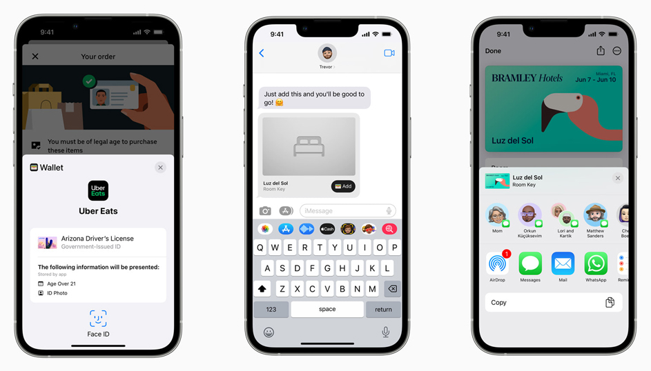 Toujours dans l’application Cartes, les clés et les identifiants bénéficient d’une prise en charge étendue. Les utilisateurs peuvent utiliser leur identifiant dans l’application Cartes pour les applications nécessitant une vérification de l’identité et de l’âge. Pour garantir une expérience privée et sécurisée, seules les informations nécessaires à la transaction seront fournies à l’application, et l’utilisateur peut les consulter et consentir à les partager à l’aide de Face ID ou Touch ID. De plus, les utilisateurs peuvent partager en toute sécurité leurs clés de maison, d’hôtel, de bureau et de voiture dans l’application Cartes via des applications de messagerie, notamment Messages, Mail, etc.