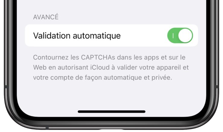 Le contournage est possible grâce à une nouvelle option proposée par Apple avec son nouveau système d’exploitation. La description de ce nouveau réglage au sein d’iOS explique : « Contournez les CAPTCHAs dans les apps et sur le Web en autorisant iCloud à valider votre appareil et votre compte de façon automatique et privée ». L’option est activée par défaut sur iOS 16 et est située dans Réglages > Identifiant Apple > Mot de passe et sécurité.