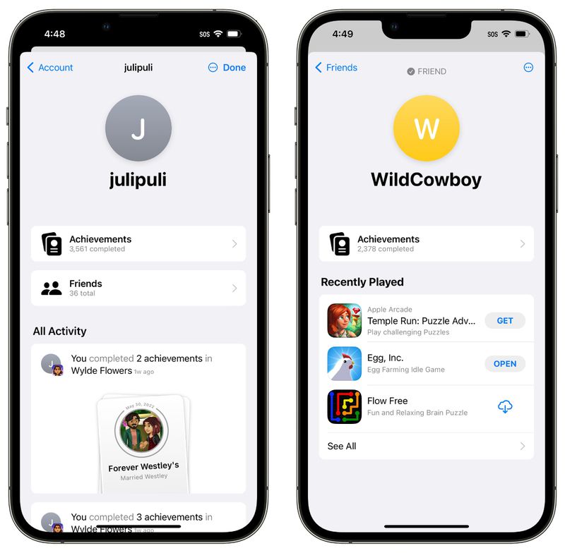 Découvrez les jeux auxquels jouent vos proches et leur score à battre dans le tableau de bord repensé ou dans l’application Contacts. L’application Contacts vous montre les profils Game Center de vos acolytes de jeu. En quelques gestes, vous pouvez voir leurs jeux préférés et leurs scores. Et comme SharePlay est désormais intégré à Game Center pour les jeux à plusieurs, vous pouvez affronter une personne pendant un appel FaceTime.
