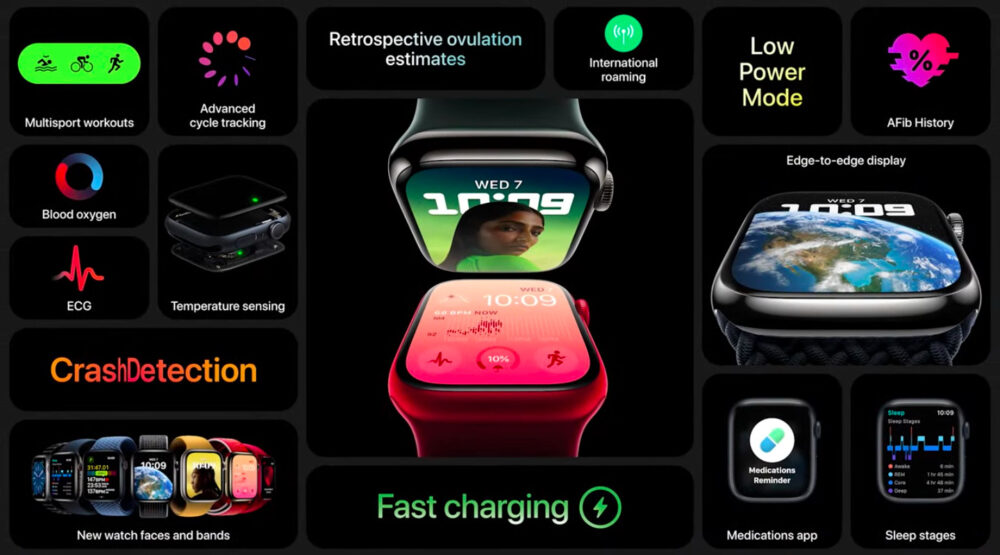 La nouvelle montre connectée d’Apple en aluminium est disponible en quatre coloris : minuit, lumière stellaire, argent et rouge PRODUCT(RED). Pour l’acier inoxydable, il y a trois coloris : argent, or et graphite. Apple propose aussi de nouveaux coloris et nouveaux design au niveau des bracelets réalisés en collaboration avec Nike et Hermès. Et grâce à watchOS 9, il est possible d’avoir tous les cadrans jusqu’ici réservés aux Apple Watch Nike sur toutes les autres Apple Watch.