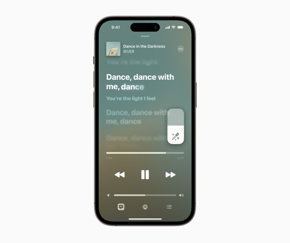 Pour enrichir son célèbre affichage des paroles sur Apple Music, Apple intègre Apple Music Sing. C’est une nouvelle fonctionnalité façon karaoké qui permet aux fans de chanter sur des dizaines de millions de chansons préférées avec la possibilité d’ajuster le niveau des voix et d’afficher les paroles en temps réel.