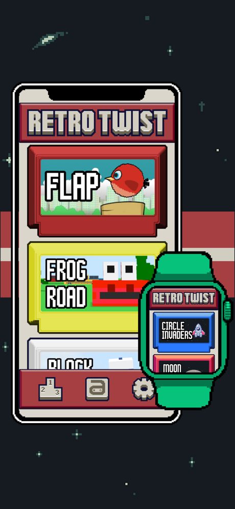 RETRO TWIST est une nouvelle version de certains jeux classiques anciens et modernes. Il mélange les mécanismes de jeu de vos jeux préférés pour créer quelque chose de nouveau. Vous pouvez jouer sur votre Apple Watch ou votre iPhone.