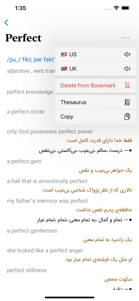 Vous cherchez un dictionnaire persan multilingue complet et efficace ? Ne cherchez pas plus loin que Persianary ! Avec sa conception fluide et conviviale, Persianary facilite la recherche de mots et l’obtention de traductions rapides. Persianary propose non seulement un dictionnaire persan complet, mais également des dictionnaires supplémentaires pour l’allemand, le français, l’espagnol, l’italien, le suédois et l’arabe vers le farsi. Chaque entrée en persan comprend non seulement la traduction du mot, mais également sa prononciation, une partie du discours, une explication, des exemples et des idiomes. De plus, Persianary propose un dictionnaire thésaurus pour les synonymes et les antonymes, ainsi qu’un petit dictionnaire spécialement conçu pour être utilisé sur une Apple Watch.