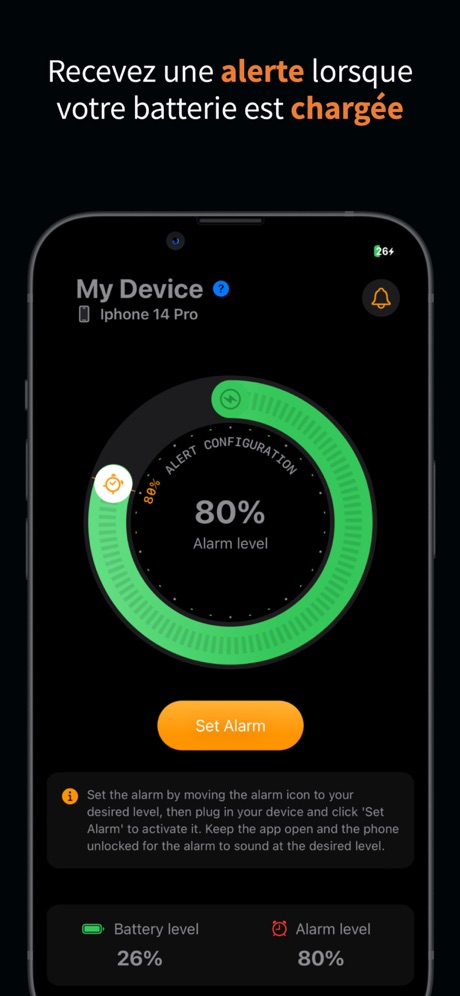 Vous n’avez plus besoin de perdre votre temps à regarder votre iPhone jusqu’à ce que la batterie soit chargée, vous serez alerté une fois que votre batterie atteindra le niveau souhaité. Avec l’application Apple Watch, vous pouvez vérifier la progression de la charge de votre iPhone depuis votre montre, rendant les choses encore plus pratiques. En plus des notifications de charge, BatteryFull+ (alarme) offre désormais un historique de vos sessions de charge. Vous pouvez suivre le temps qu’il faut pour charger votre appareil et voir combien de temps vous passez à le charger. Avec cette fonctionnalité, vous pouvez optimiser vos habitudes de charge et prolonger la durée de vie de votre batterie.