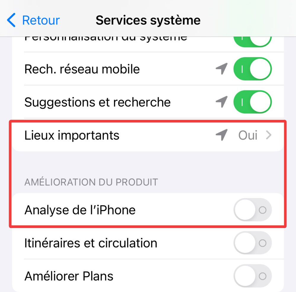 Pour information, la fonction « Lieux importants » autorise votre à mémoriser les lieux qui vous sont importants afin d’obtenir des données de localisations utiles dans les applications Plans, Calendrier, Photos et d’autres applications. Ces lieux ne peuvent pas être lus par Apple.