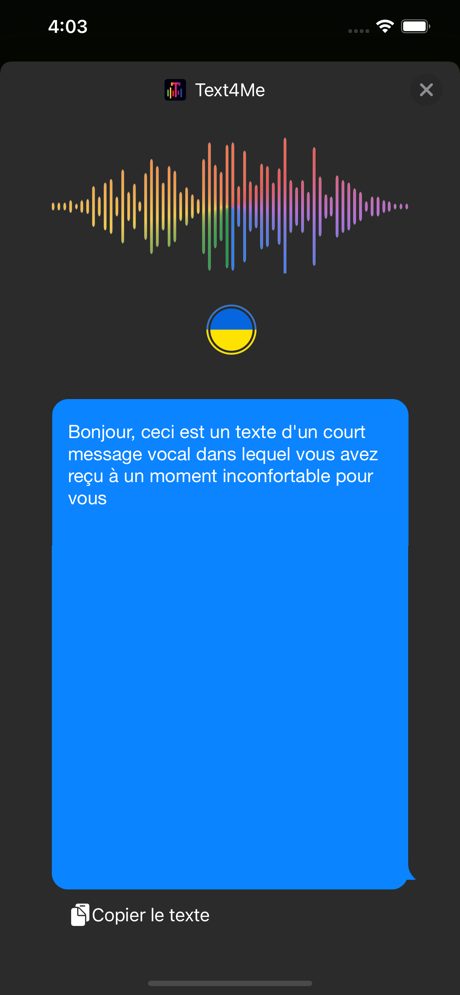 Text4Me est une application de transcription permettant de reconnaître le texte de messages populaires tels que : Telegram, WhatsApp, Signal, Youtube, TikTok. Vous devez simplement installer l’application et l’extension de configuration via les instructions dans l’application. Il peut également aider à reconnaître le texte des fichiers audio et vidéo. C’est sécurisé pour l’utilisateur, vous pouvez utiliser la fonctionnalité de l’appareil interne pour le traitement audio sans envoyer l’audio à aucun service via Internet.