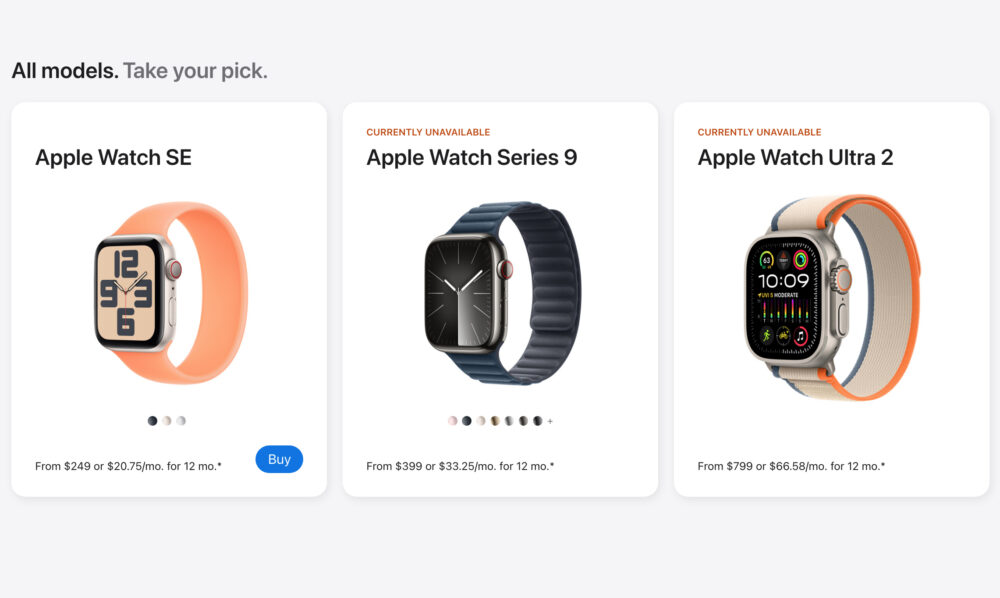 Conformément aux attentes, Apple a retiré de la vente les Apple Watch Series 9 et les Apple Watch Ultra 2 sur l’Apple Store en ligne aux États-Unis. Cette mesure fait suite à des allégations de violation de brevets formulées par Masimo à l’encontre d’Apple.