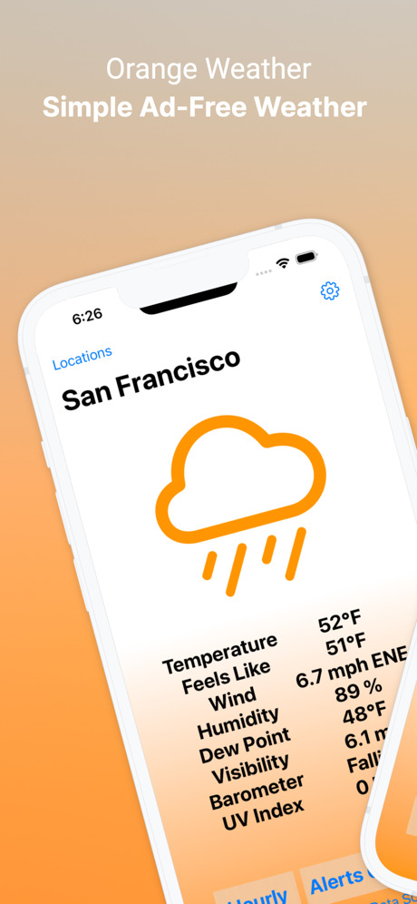Orange Weather est une application météo sans publicité qui vous offre un accès rapide aux conditions météorologiques, aux alertes et aux prévisions sans vous montrer de publicité. Ajoutez autant d’emplacements que vous le souhaitez et basculez facilement entre eux. Cette application respectera votre utilisation de la palette de couleurs sombres (mode nuit).