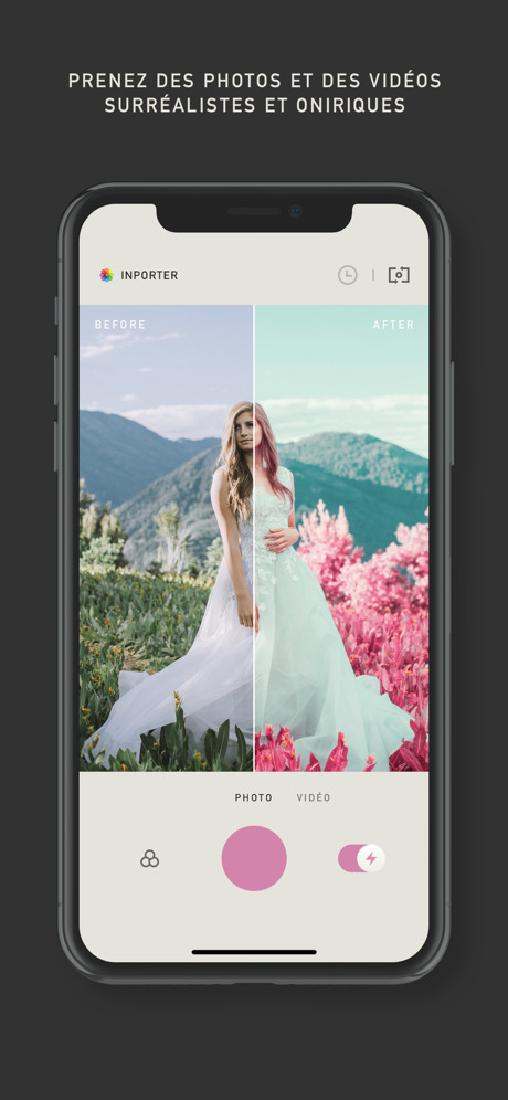 La photographie infrarouge est une technique photographique qui visualise le monde rendu en lumière infrarouge invisible. Inspiré par la photographie infrarouge, Infragraf transforme les couleurs vertes des plantes et bleues du ciel en d’autres couleurs pour vous aider à capturer des photos et des vidéos fantastiques.