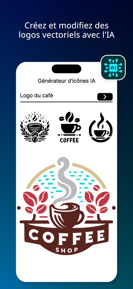 Révolutionnez la création de logos avec notre outil ! Maitrisez facilement le design vectoriel et l’IA pour des logos étonnants. Concepteur de Logos Vectoriels est une application unique qui met toute la puissance de la conception de logos à portée de main. Créez facilement et sans effort des graphiques personnalisés ou des conceptions de logos tout en laissant libre cours à votre imagination. Des fonctionnalités fluides, des éléments faciles à utiliser et des modèles tactiles font tout le travail pour vous, tandis que vous laissez simplement votre créativité s’exprimer par de légers tapotements.