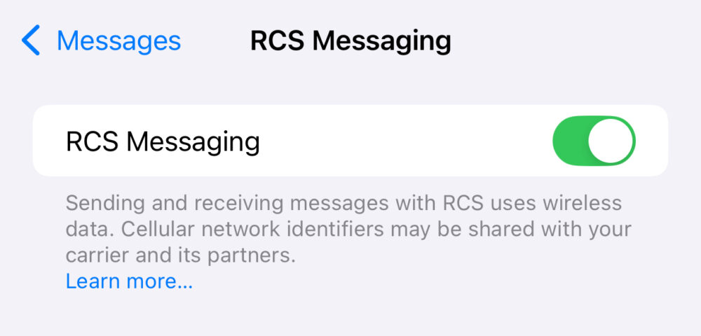 - Au sein des réglages de l’application, il y a un nouveau sous-menu spécifique pour le RCS afin d’activer ou désactiver la messagerie. Le réglage était auparavant placé sur la page précédente.